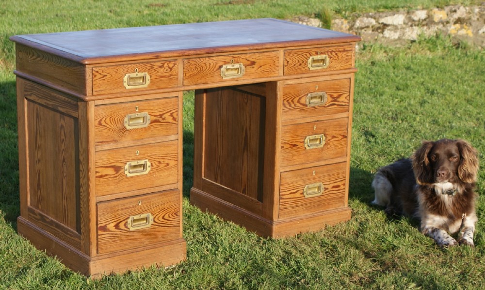 A LATE 19TH CENTURY PINE PEDESTAL DESK