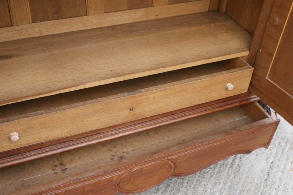 Dating to the last quarter of the 19th century and being crafted in solid and veneer oak, this stunning Louis XV style armoire is in very good condition and will come completely flat for ease of going upstairs.