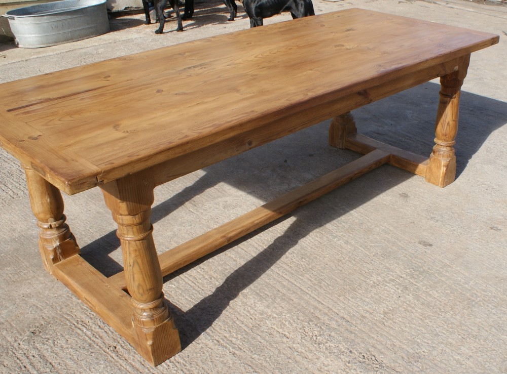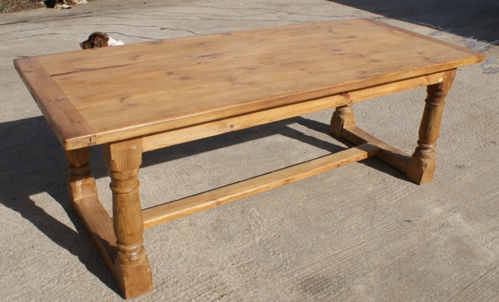HEAVY LARGE ENGLISH PINE REFECTORY DINING TABLE
