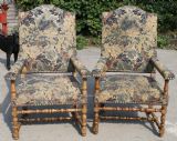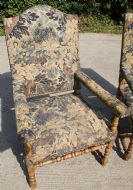 The studded floral fabric is contemporary to the chairs and commensurate with it's age, it does have some sign of wear on the arms which I have shown in the photo's.
