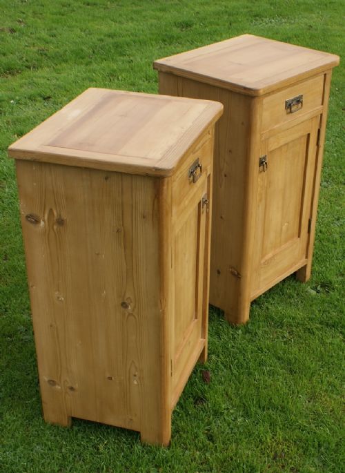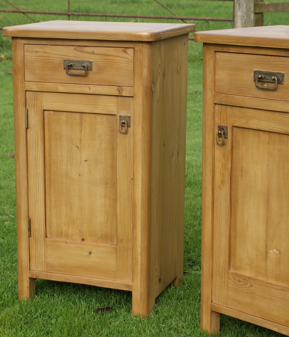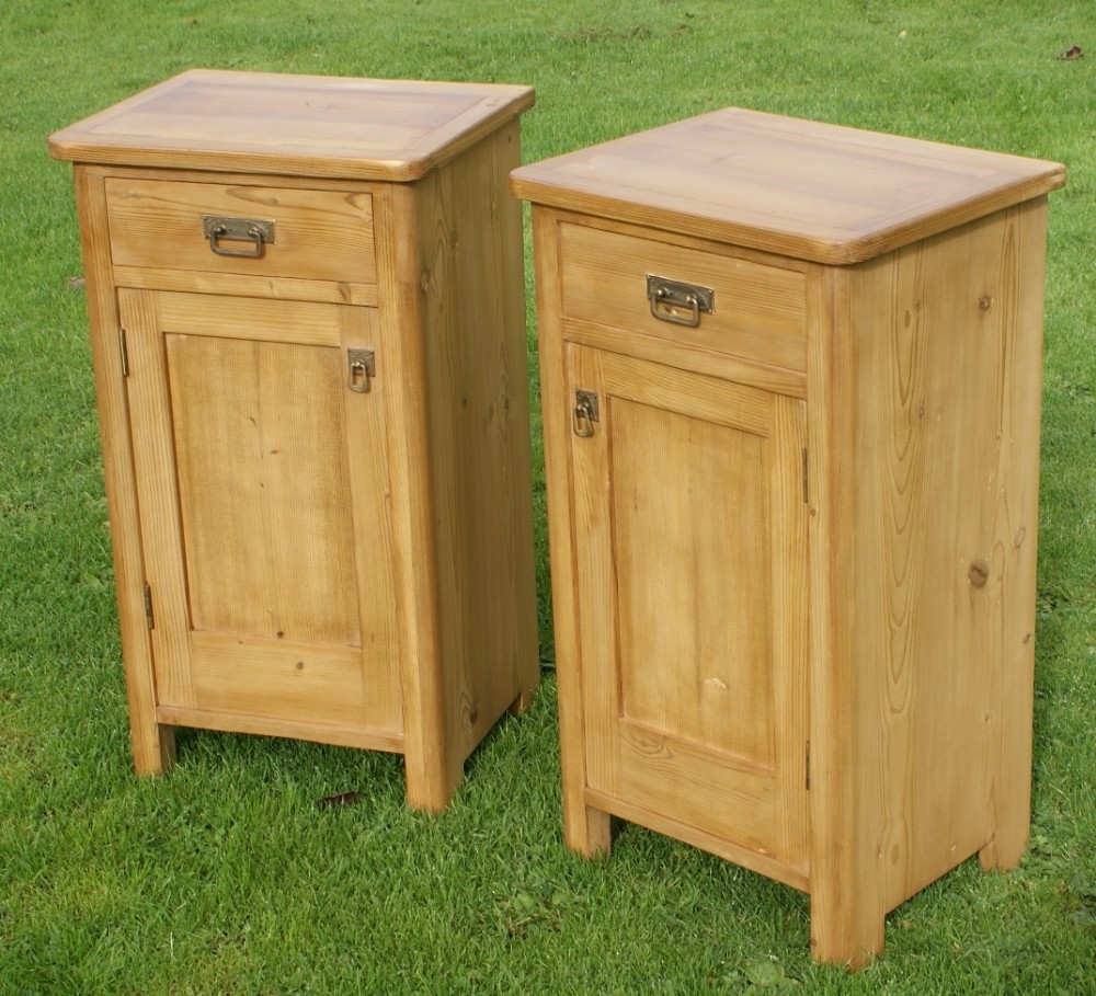 A FINE MATCHING PAIR OF ANTIQUE SOLID PINE DUTCH BEDSIDE CABINETS