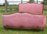 PRETTY EARLY / MID 20th CENTURY FRENCH UPHOLSTERED DOUBLE BED WITH BASE