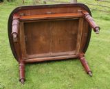 Standing on it's original china casters the table has turned and moulded legs with moulded frieze rails.