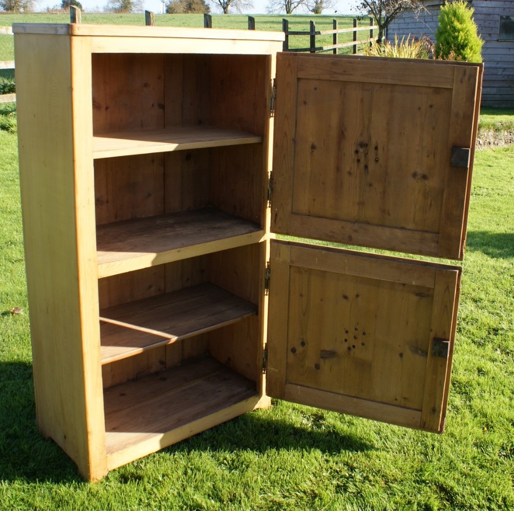 A FINE ANTIQUE GERMAN STRIPPED PINE KITCHEN FOOD CUPBOARD