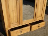This is all enclosed with 3 doors complete with working locks. The central door has a later replacement mirror which is in excellent condition. The 2 flanking doors have relief carvings and original knobs. This is further complimented with a very pretty raised moulded pediment cornice that also has relief carving......