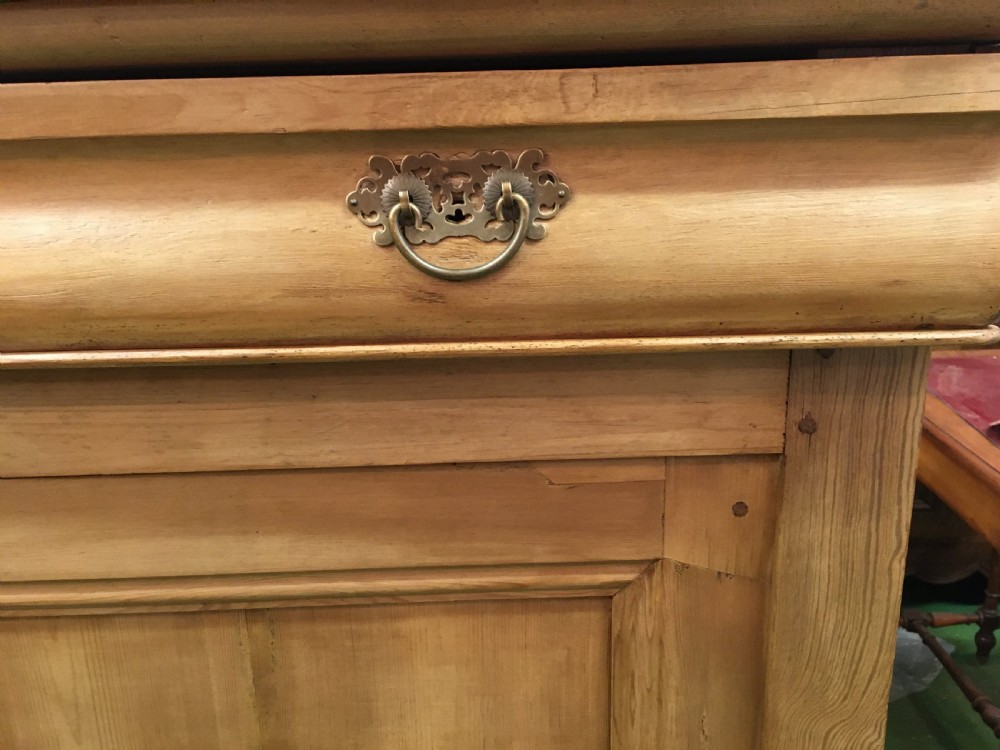 Dating to the middle of the 19th century, this Louis Philippe pine cupboard is in very good all round condition. Standing on bracket feet, the cupboard has a single shelf to the inside which is enclosed with a pair of panel doors complete with working lock and key. ?As shown in the photos, there has been a couple of historical repairs to the door but this does not distract from the cupboards over all appeal. ?The top of the cupboard is constructed in sycamore and is all good with no significant marks Commensurate with it's age, there has in the past been a tiny amount of insect attack to the Buffet but it has all been sprayed with a 5 star 20 year treatment.. The Buffet measures; base 55.75 inches wide 22.25 inches deep 52.75 inches high.. ?The cost of delivery to England and Wales is £85.00 ?For Scotland please contact me for a quote. (please see website for further shipping details). Alternatively you are welcome to collect from my showroom at any time.